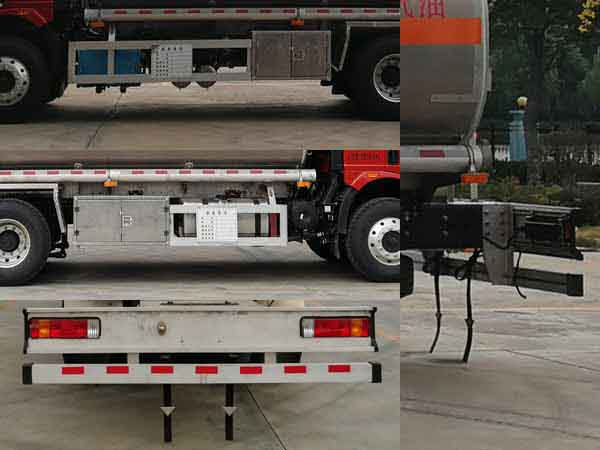 | 配置 | 1、該車適用于危險(xiǎn)品運(yùn)輸,運(yùn)送危險(xiǎn)貨物車輛類型為:FL型,類項(xiàng)號(hào):3。運(yùn)輸介質(zhì):汽油,密度:700千克/立方米。罐體有效容積24.5立方米,罐體外形尺寸(長(zhǎng)×寬×高)(mm):7200×2400×1750。整車外形長(zhǎng)與采用軸距/后懸對(duì)應(yīng)關(guān)系為(mm):10110/4600+1350/2760,10110/4800+1350/2560。2、側(cè)、后防護(hù)材料均為鋁合金,螺栓連接;后防護(hù)截面尺寸(寬×高)(mm)60×120,下邊緣離地高500mm。3、隨底盤選裝高頂駕駛室,選裝前圍和燈具。僅選用排氣管前置、限速裝置(限速79km/h)、前輪盤式制動(dòng)及子午線輪胎的底盤;安裝帶有衛(wèi)星定位功能的行駛記錄儀;ABS系統(tǒng)生產(chǎn)廠家:長(zhǎng)春瑞立科密汽車電子有限公司,型號(hào):CM4XL。采用發(fā)動(dòng)機(jī)與油耗值對(duì)應(yīng)關(guān)系為(L/100km):CA6DK1-32E6/37.47,CA6DK1-28E6/37.47。 該車后軸為采用空氣懸架. | ||
