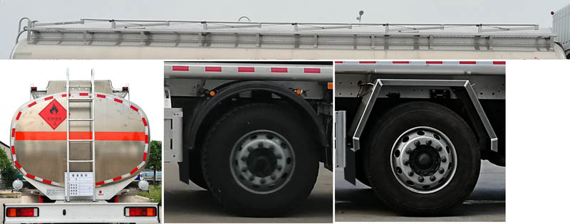 配置  1、該車適用于危險(xiǎn)品運(yùn)輸,運(yùn)送危險(xiǎn)貨物車輛類型為:FL型,類項(xiàng)號(hào):3。罐體有效容積29.7立方米,運(yùn)輸介質(zhì):汽油,密度:700千克/立方米。罐體外形尺寸(長(zhǎng)×寬×高)(mm):9200×2400×1650。2、側(cè)/后防護(hù)材料均為鋁合金,螺栓連接;后防護(hù)截面尺寸120×60mm,下邊緣離地高500mm。**軸選裝膠制擋泥板或方形擋泥板,罐體上部選裝上走道,選裝后牌照燈。3、隨底盤選裝平頂駕駛室;選裝駕駛室前面罩;高頂駕駛室頂部氣喇叭為選裝件;駕駛室前角擾流板為選裝件。僅選用排氣管前置、限速裝置(限速80km/h)、前輪盤式制動(dòng)及子午線輪胎的底盤;安裝帶衛(wèi)星定位功能的行駛記錄儀。ABS型號(hào)/生產(chǎn)廠家:ABS 8/東科克諾爾商用車制動(dòng)系統(tǒng)(十堰)有限公司。采用的發(fā)動(dòng)機(jī)DDi75E350-60對(duì)應(yīng)油耗值為38.1L/100km。該車后軸為采用空氣懸架.轉(zhuǎn)向輪安裝爆胎應(yīng)急防護(hù)裝置。