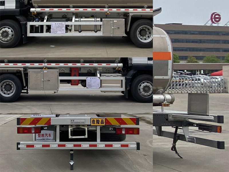 其它:1、該車適用于危險品運輸,運送危險貨物車輛類型為:FL型。準運介質(zhì)最大密度:850千克/立方米,罐體總?cè)萘?9.1立方米,罐體有效容積18.88立方米。罐體外形尺寸(長×寬×高)(mm):7200×2200×1500。2、側(cè)防護材料為鋁合金,螺栓連接;后防護材料為Q235,截面尺寸(mm)140×80,下邊緣離地高480mm。僅采用4575+1400mm,4975+1400mm軸距。3、隨底盤選裝駕駛室。副駕駛車門可選裝下視窗。選裝前部燈具。EBS系統(tǒng)控制器型號/生產(chǎn)企業(yè)為:EBS3/采埃孚商用車系統(tǒng)(青島)有限公司。僅選用排氣管前置、限速裝置(限速80km/h)、前輪盤式制動及子午線輪胎的底盤,轉(zhuǎn)向輪安裝爆胎應急防護裝置,后軸采用空氣懸架,安裝帶衛(wèi)星定位功能的行駛記錄儀。發(fā)動機型號與油耗值(L/100km)對應關(guān)系分別為:MMC09.35-60/33.83,WP8.350E61/33.02,MC07.33-60/34.98,MC07.27-60/34.98,MC11.40-60/33.02,WP7.270E61/33.03,MC07.34-60/34.98,MC09.38-60/33.83,MC07.31-60/34.98,WP6H270E61/32.97,MC07H.35-60/33.79,MC07H.33-60/33.79,WP7.300E61/33.03,MC07H.29-60/33.79,WP7H320E62/33.0,WP7H300E62/33.0,WP7H270E62/33.0。4、選裝ETC。罐體上部選裝上走道,選裝左右側(cè)后部工具箱及左側(cè)工具箱樣式,選裝鐵制滅火器筒。