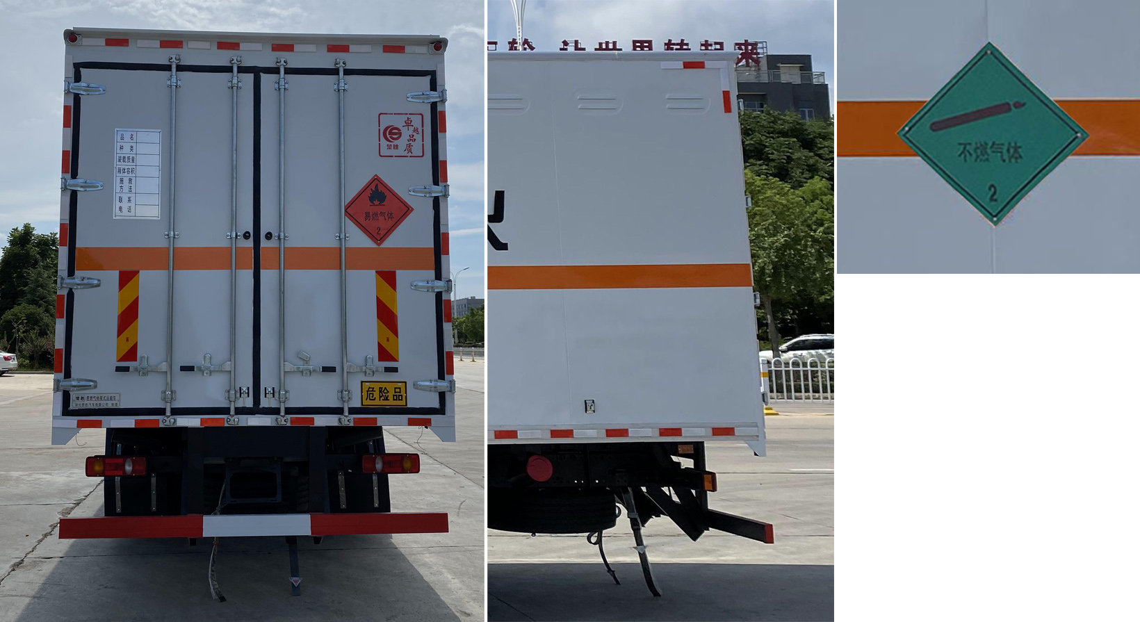| 配置 | ABS型號:3631010-C2000;ABS生產(chǎn)企業(yè):東科克諾爾商用車制動系統(tǒng)(十堰)有限公司;安裝有限速裝置;限速裝置限速(km/h):80;安裝有具有衛(wèi)星定位功能的行駛記錄儀;選裝描述:隨底盤選裝駕駛室前面罩,選裝側(cè)窗玻璃;駕駛室頂部中間三個裝飾燈為選裝件;前霧燈為選裝件;駕駛室前臉擾流罩為選裝件。選裝后部無尾板。運輸具有**包裝的不可燃?xì)怏w,安裝2.2類危險品標(biāo)識。該車型可選裝ETC車載裝置.;發(fā)動機/油耗值(L/100km)對應(yīng)關(guān)系為:B6.2NS6B210/26.5,DDi50E190-60/23.9;所用材料材質(zhì)、連接方式以及后部防護裝置的主要尺寸參數(shù)(斷面尺寸和離地高度):側(cè)/后防護材料為Q235,側(cè)防護螺栓連接,后防護焊接,截面尺寸120×60mm,下邊緣離地高490mm;尾板、上下坡道(或類似裝置)收起狀態(tài)的水平長度(mm):液壓升降尾板收起狀態(tài)水平長度為290mm,尾板質(zhì)量為550kg;車廂頂部封閉且不可開啟;運輸**容器(瓶)包裝的貨物;FL型車輛;危險貨物類項號:2.1,2.2;其他說明:該車為危險貨物運輸車.僅選用排氣管前置、前輪盤式制動及子午線輪胎的底盤,轉(zhuǎn)向輪安裝輪胎爆胎應(yīng)急防護裝置,后軸采用空氣懸架;廂體側(cè)面選裝開門型式及位置,選裝不帶側(cè)開門,選裝瓦楞板結(jié)構(gòu);廂體側(cè)面板選裝開百葉窗。 | ||