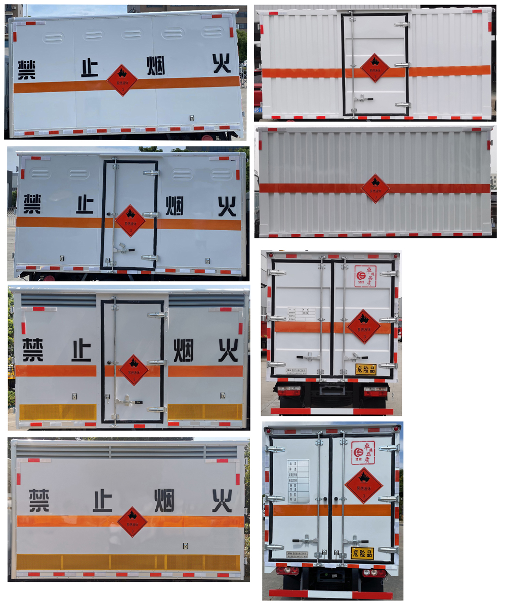 | 配置 | 1、該車適用于運(yùn)輸危險(xiǎn)品。運(yùn)送危險(xiǎn)品類項(xiàng)號(hào):3。廂體頂部封閉,不可開(kāi)啟。2、側(cè),后防護(hù)材料均為Q235,側(cè)防護(hù)螺栓連接;后防護(hù)焊接,截面尺寸100×50mm,下邊緣離地高360mm。3、隨底盤選裝前部燈具和側(cè)轉(zhuǎn)向燈,選裝駕駛室圍面板和格柵,選裝前保險(xiǎn)杠外觀,選裝輪輞外觀,選裝輪眉.僅選用排氣管前置、限速裝置(限速80km/h)、前輪盤式制動(dòng)及子午線輪胎的底盤,安裝帶有衛(wèi)星定位功能的行駛記錄儀。ABS**器型號(hào)/生產(chǎn)廠家:YF8/武漢元豐汽車電控系統(tǒng)有限公司。發(fā)動(dòng)機(jī)/油耗值(L/100km)對(duì)應(yīng)關(guān)系為:Q23-95E60/11.4.轉(zhuǎn)向輪安裝輪胎爆胎應(yīng)急防護(hù)裝置,該車型可選裝ETC車載裝置.廂體側(cè)面選裝開(kāi)門型式及位置,選裝不帶側(cè)開(kāi)門,選裝瓦楞板結(jié)構(gòu);廂體側(cè)面板選裝開(kāi)百葉窗。 | ||
