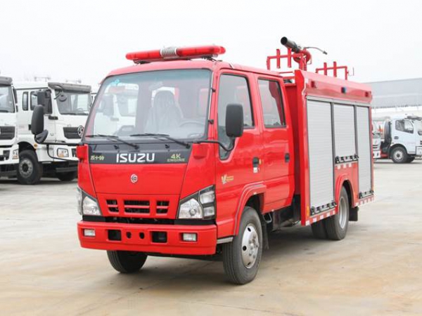 2噸消防車采用慶鈴汽車股份有限公司QL1070BUHWY 型二類汽車底盤,原裝雙排駕駛室,乘員2+3人,該車駕乘舒適輕便。上裝采用內(nèi)藏式水罐,整車載液量為1880kg。器材箱采用高質(zhì)量鋁合金卷簾門。底盤取力,發(fā)動機型號為4KH1CN6LB,最大功率88kW,通過萬向聯(lián)軸器驅(qū)動安裝在汽車尾部泵房里的上海雄真CB10/30型常壓消防泵,可在1.0MPa下穩(wěn)定輸出30L/s的流量;車頂安裝威斯特PL8/24型消防炮,流量30L/s,對應(yīng)壓力0.8MPa,最大承壓1.3MPa,射程 水:≥60m 泡沫≥45m,可360°旋轉(zhuǎn)。該車具有軸距短、通過性強、綜合性能強、操控集中簡便等特點。